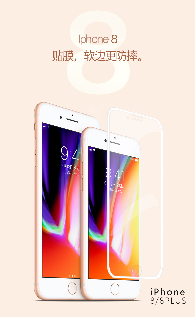 IPHONE8/8PLUS曲面3D软边碳纤维保护膜