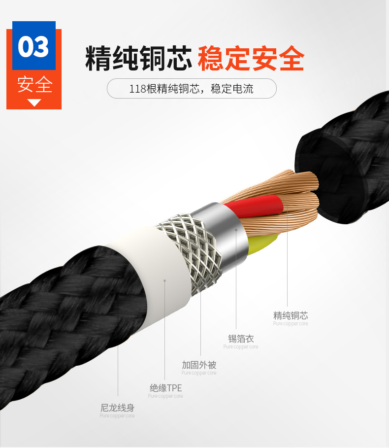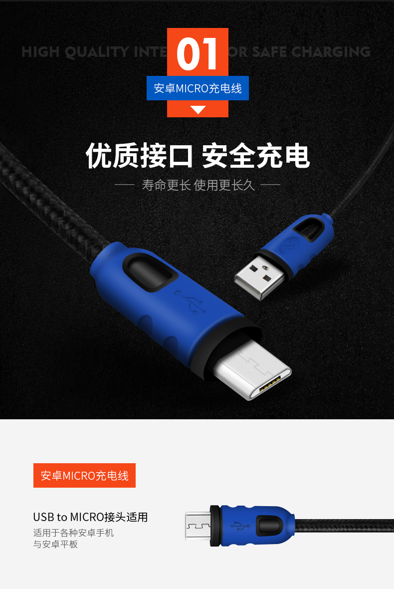 安卓MICRO快充2.5A数据线M03-2.5