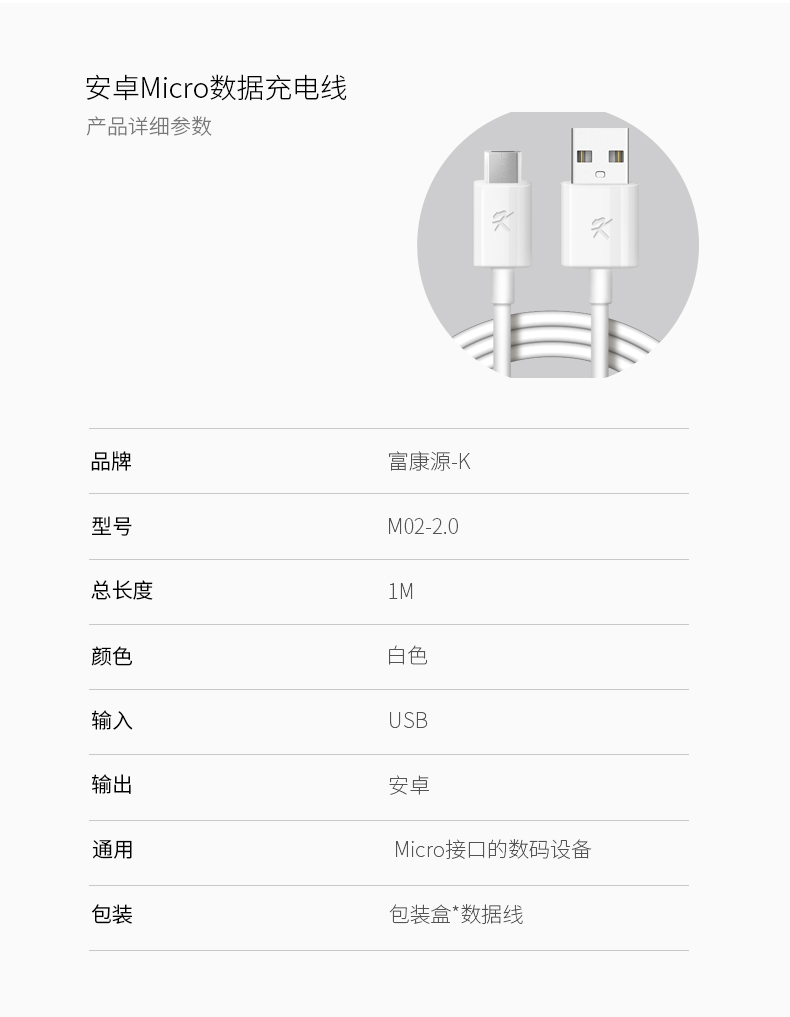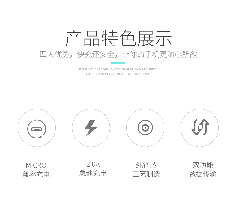 安卓MICRO接口充电传输数据线M02-2.0
